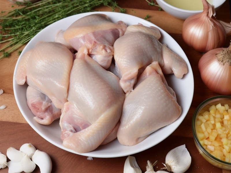 - Season the chicken pieces with the Colombo spice blend, salt, and pepper.