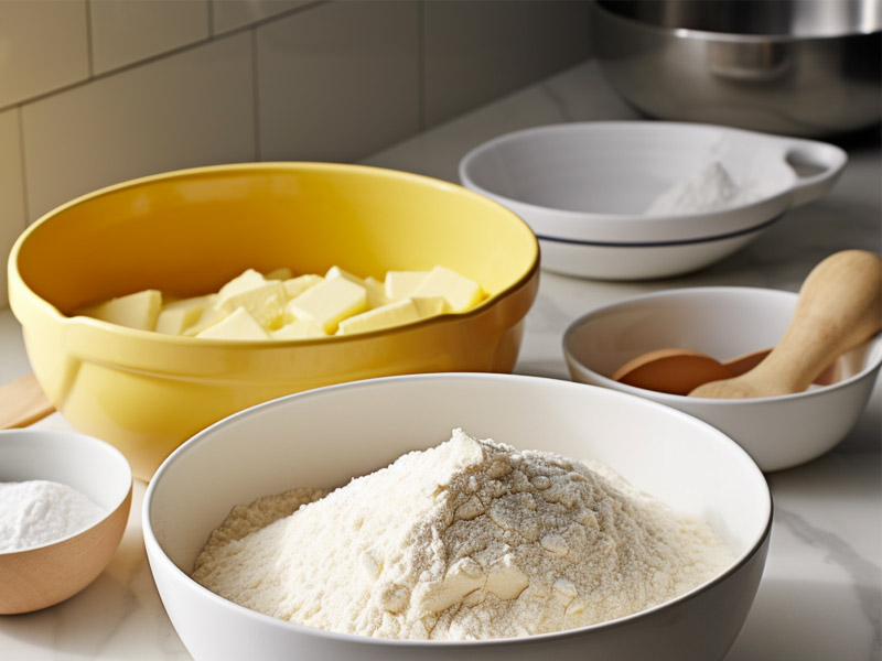 3) Add the melted butter and milk to the dry ingredients and mix until a dough forms.